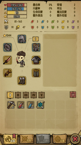 7、然后6-10全清,箱子骸骨堆全开(小石怪,小恶魔,树妖能不打就不打,拦罐子和拦金箱的可以考虑一下)如图所示。基本自身已经到达了9,10级,也有20多红药和蓝药这样。(切记10楼下楼梯前状态在一半达到利益最大化,多血多蓝可以打打怪拿经验和金币)