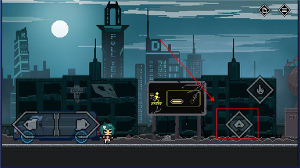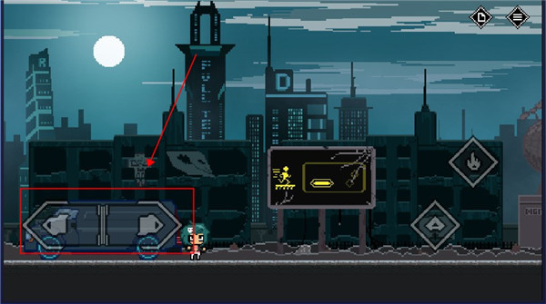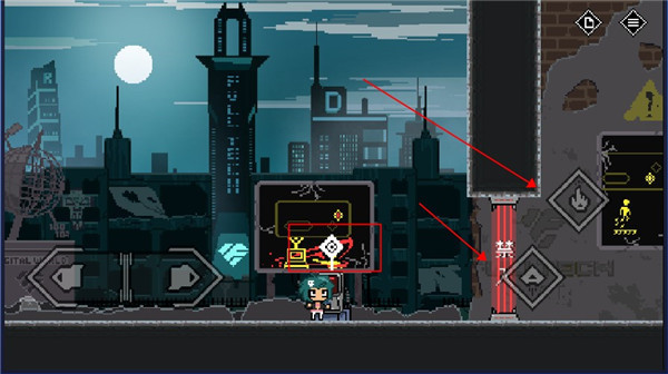 5、遇到禁止通行的大门,不能直接过去,要找到开关点击攻击,这扇门需要走到红框中的位置按跳跃,同时按攻击即可打开。