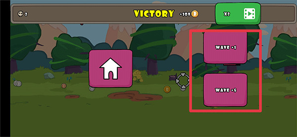 6、胜利后,你可以点击 WAVE+1和WAVE+5来增加游戏中的敌人波数。