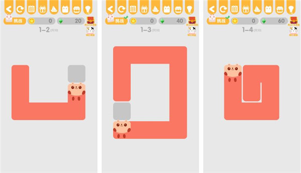2、这里需要两只动物一起画完所有格子才能通关,并且带颜色的方格只能由对应颜色的动物去画。