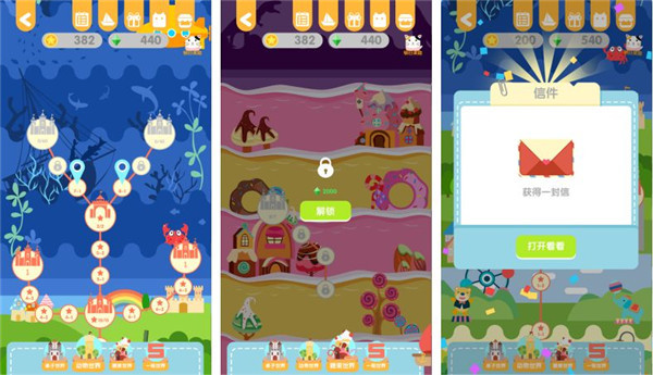 7、之后我们可以继续闯关第7大关。当有了一些宝石我们还可以去解锁第2个世界:糖果世界,这个世界的关卡相对也比较困难。或者也可以去做信件任务。
