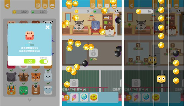 6、在家园中点击动物头像上的游戏按钮可以与动物们游玩互动游戏。每个房间里的小游戏是不一样的。游玩后还可以领取金币奖励。