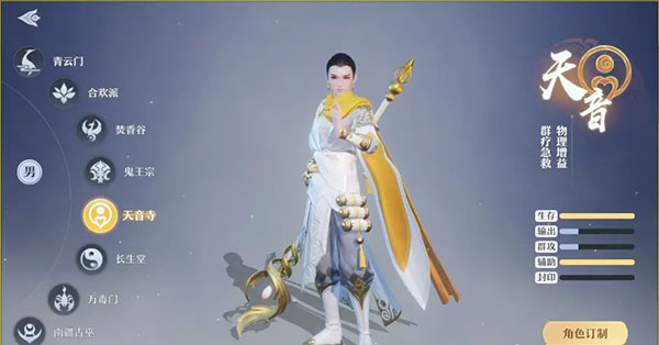 治疗职业,拥有解封技能的群体辅助治疗,法术攻击增益buff,擅长持续回血、群体回血、群体复活以及解封等。相比天音辅助能力更强。