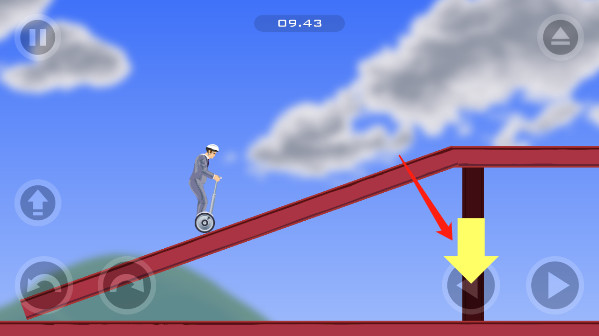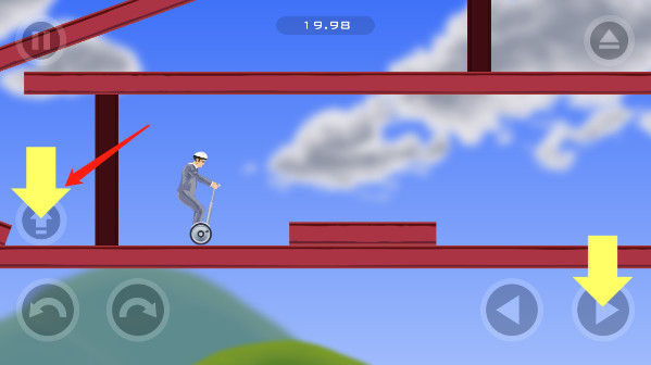 3、屏幕中总共有五个操作按钮,左下角的三个按钮分别是跳跃、左倾和右倾,利用左边的按钮可以调节平衡,屏幕右下角则是前进和后退。
