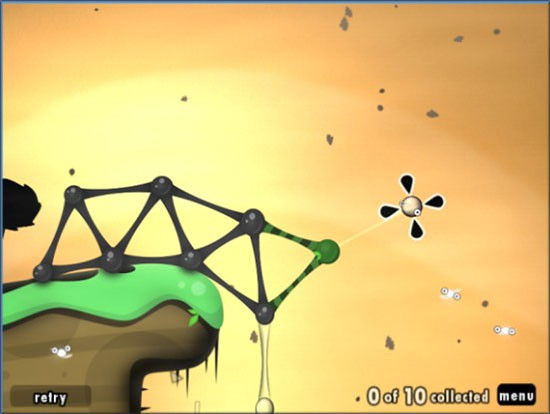 在2008年度独立游戏节获奖游戏中,2DBoy开发的益智物理动作游戏《World of Goo》捧得了设计创新奖和技术优秀奖两个奖项,游戏继续完善至今才正式推出,可见制作者的用心和对这款游戏的期待。