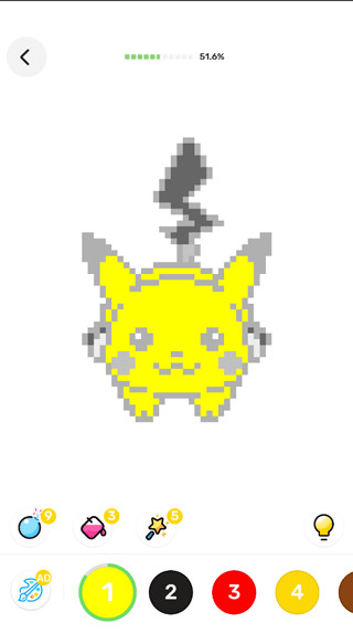 2、按照提示给皮卡丘进行涂色,每次涂完一种颜色就会自动进行下一种颜色的填充。