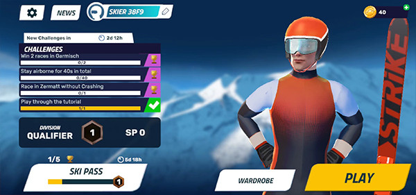 2、成为滑雪场上的大师,开始的挑战和比拼的对战动能玩法都能够让玩家来游戏。