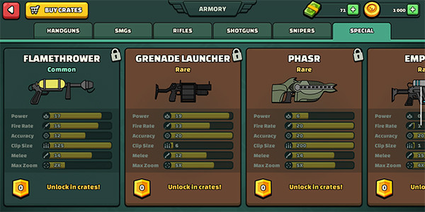 1、武器库庞大多样:涂鸦军团2迷你民兵内含40多种武器组合,从手枪、突击步枪到激光与火焰喷射器,每种武器都有独特手感和威力。