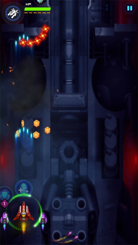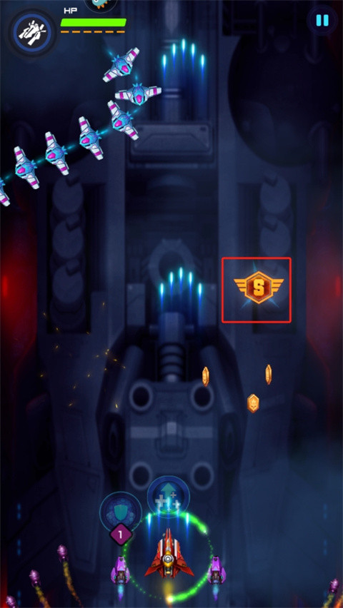 3、长按屏幕控制战机移动,精准避开敌方攻击。