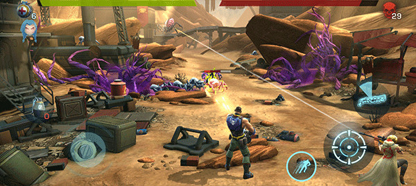使用左下角摇杆调整角色位置,灵活躲避敌人攻击。