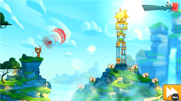 完美诠释了弹弓弹射玩法,玩家点住弹弓划动控制弹射路径,松开手指即可弹射出小鸟,配合关卡中的机关,掌握最佳发射时机,一小只拿下大满贯统统不是梦!