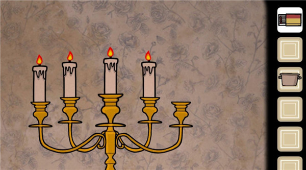 3、过去:可以移动后搜刮屋子拿到“冷汤”和“蜡烛”,将蜡烛放在烛台上用火柴点燃。