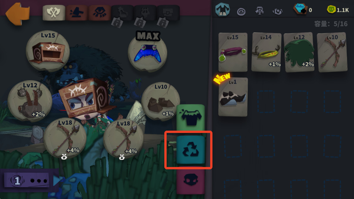 1、点开我们的背包,选择上面第二个熔炼(打到3层解锁),也就是强化装备的界面。