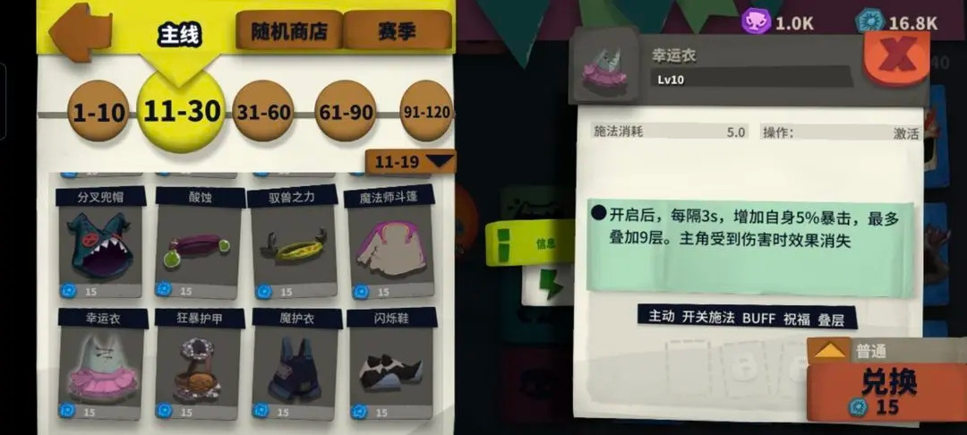 幸运衣(主要作用提升暴击率)