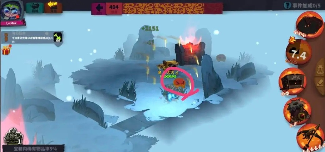 401以后的图,出现了两种新型攻击方式。这种红色恶魔头,会在你靠近它的时候靠近你,然后撞击你造成高额伤害,轻则半血,重则送命,同时会打断你幸运衣的buff。