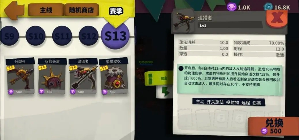 右上角兑换图鉴里选择S13,找到追猎者,兑换。