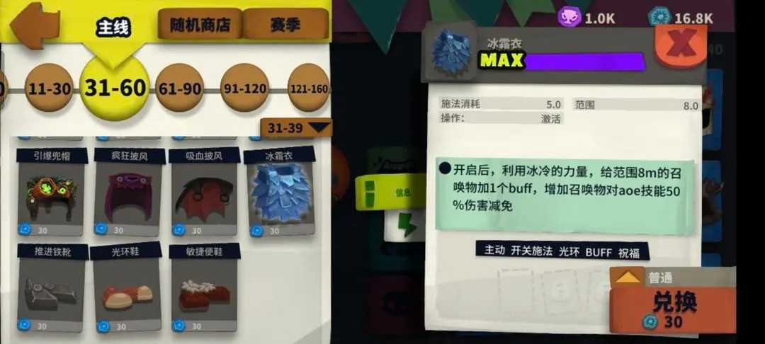 衣服选择:主要提升召唤生物生存能力,品质方面无所谓。
