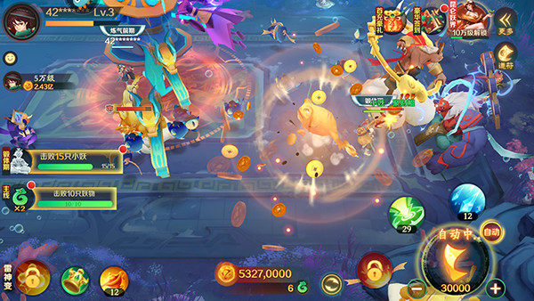 2、攻击有几率触发致命一击,触发后怪物立即被击败,并且获得妖灵奖励。怪物倍数越高,妖灵奖励越多,但是也越难触发致命一击。