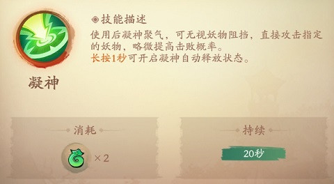 4、长按凝神或狂暴技能按钮1秒后,可开启自动释放状态再次点击后关闭。