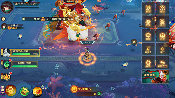 除了捕鱼主线,新仙魔九界内还隐藏诸多迷你玩法,如小蓝鲸寻宝、真假灯笼鱼、猜拳石头剪刀布等,每一场小游戏都可能触发意外奖励。此外,部分副本与小游戏融合,打破传统挂机式体验,带来更多变的娱乐节奏。