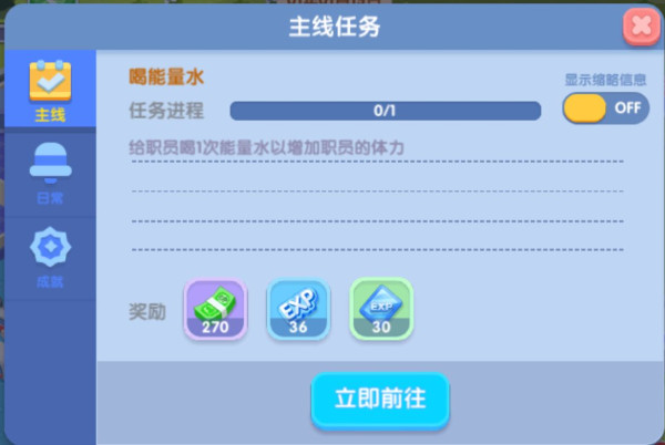 通过医治病人和完成日常订单等任务获取职员经验值对职员进行升级,职员等级达到一定级别的时候可以通过职员证书晋升职员。