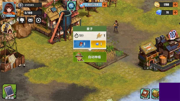 2、想要获得一些初始的材料必须得进行作物种植才行,麦子是最简单的作物,等待时间也最短