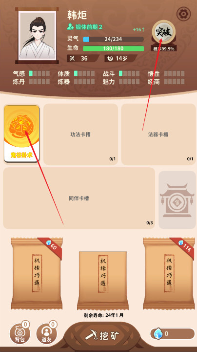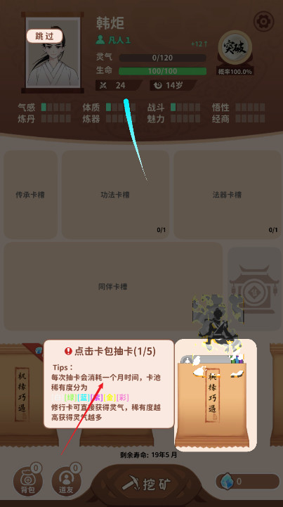 开卡包收集资源,可组合升级,打造专属修炼方案与策略。