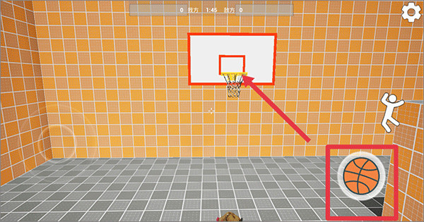 3、然后把球运到自方篮球框下点击篮球的图标进行投篮,最先到达分数的人获得胜利