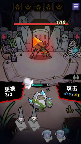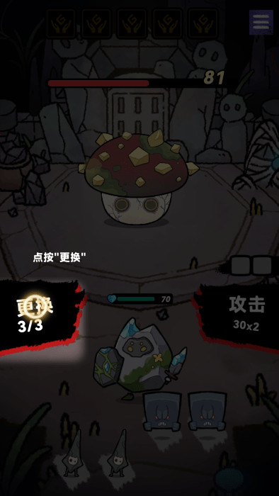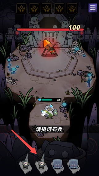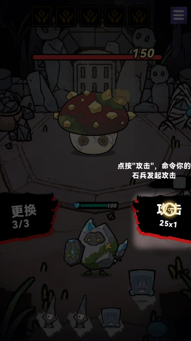 选择后你会看到攻击按钮,点击让你的石兵攻击敌人。