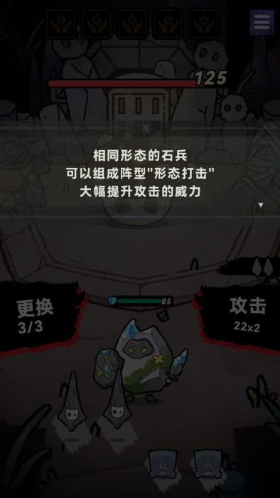相同的石兵可以组成阵型,就能打出更多的伤害了。