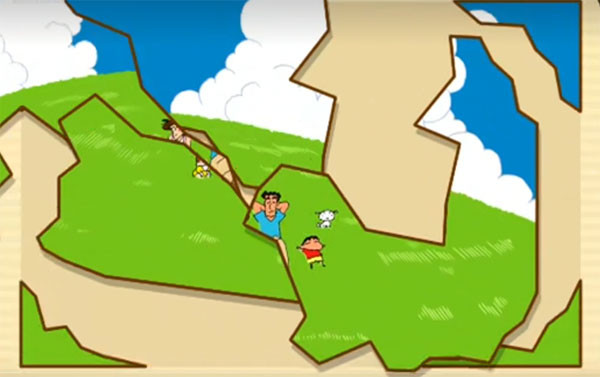 4、然后蜡笔小新就可以开始拼图了,点击拼图碎片移动到合适位置即可