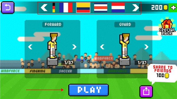2、多样化角色与场景:数十种角色可供解锁,每个角色外观、姿态、动作都独一无二,球场风格涵盖草地、沙滩、机械场等不同主题。