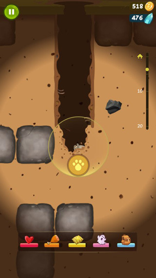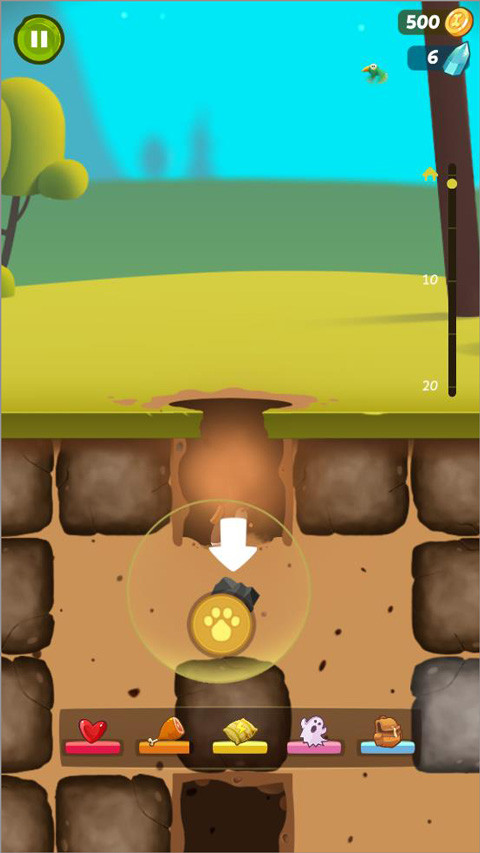 3、精美好看的画面,很多的宝贝全是掩埋在地下,游戏玩家将控制小狗深层次地下寻找宝物。