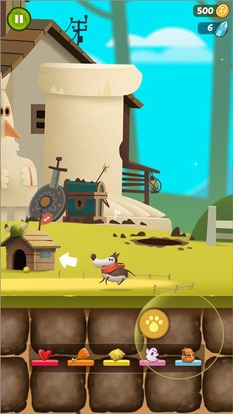 2、选择好小狗后,玩家滑动小狗开始冒险;