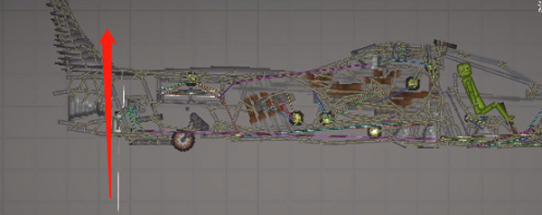 3、需要注意的是,这种不稳定的结构一定要加上支柱,即机头中间的长铁块,调成无重力不碰撞,链接到机头外壳即可
