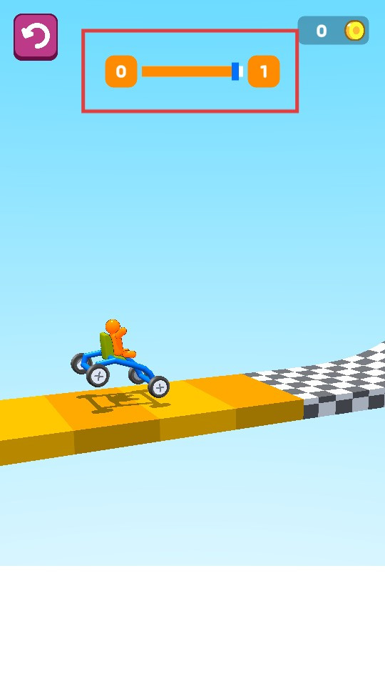 4、驾驶车辆朝着终点前进,争取让进度条从【0】推进到【1】,率先到达终点。