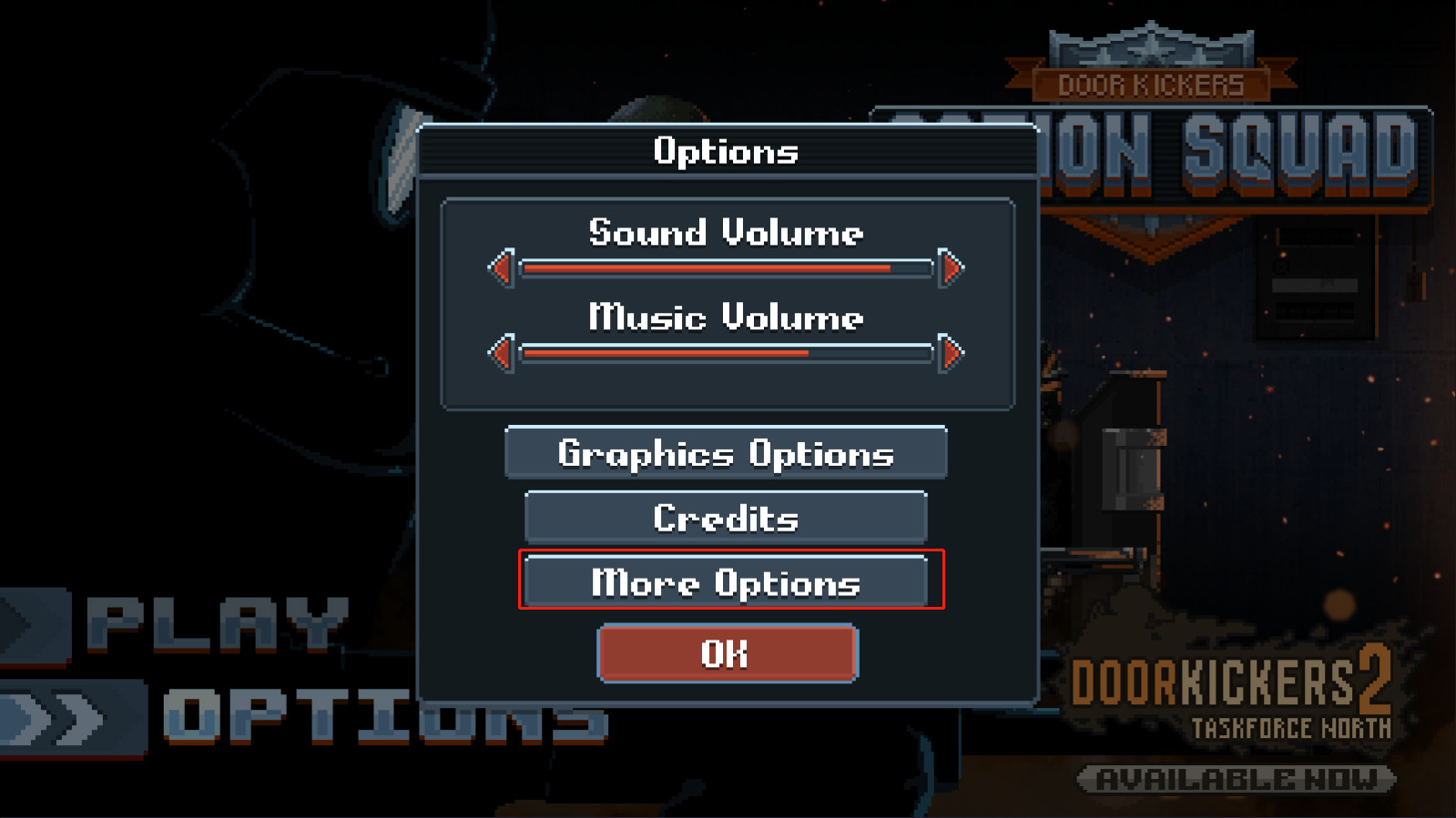 1、首先在破门而入行动小队游戏主界面中选择【options】选项