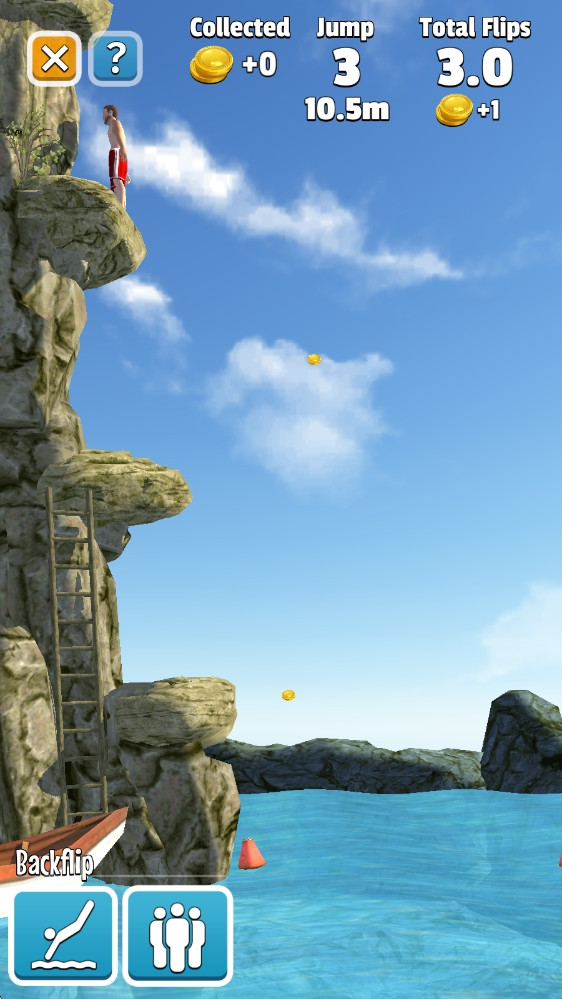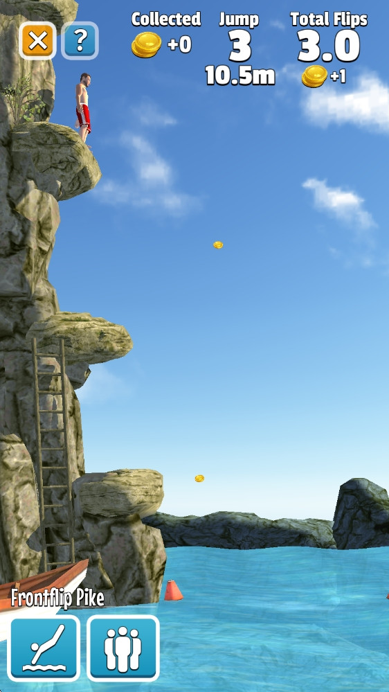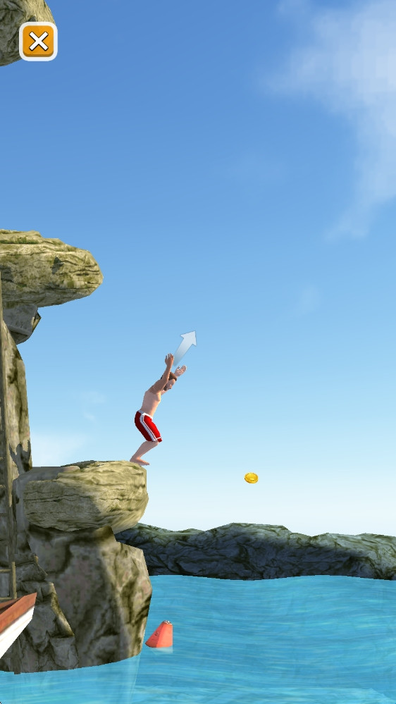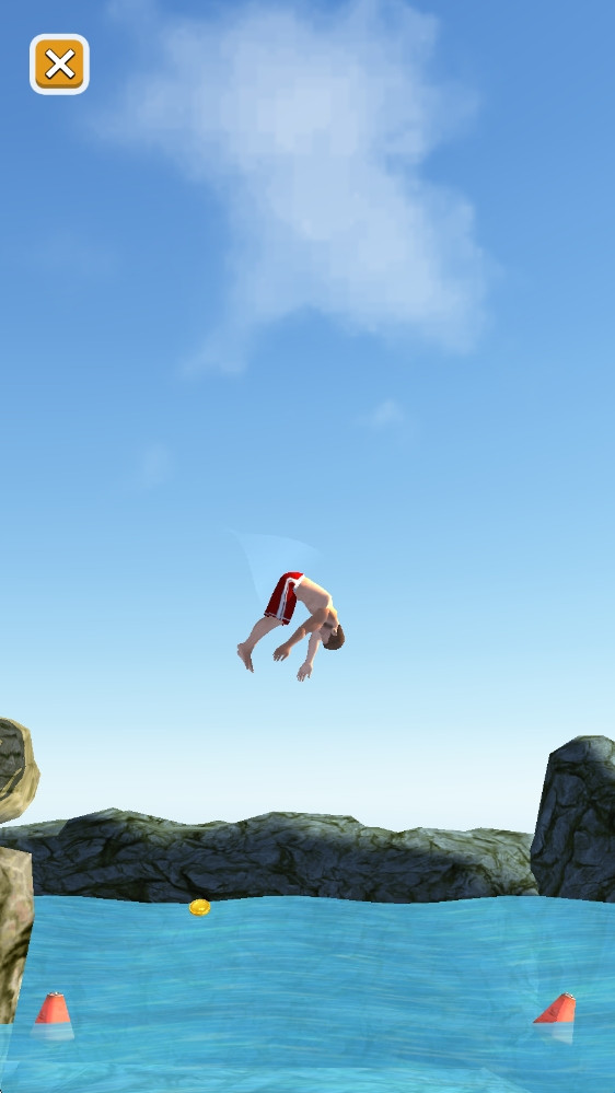 在游戏中,玩家只需要控制角色离开跳台,然后点击屏幕让其用各种姿势入水即可。当然如果想要拿到高分,还是需要角色的头部或脚部笔直入水才算达标。