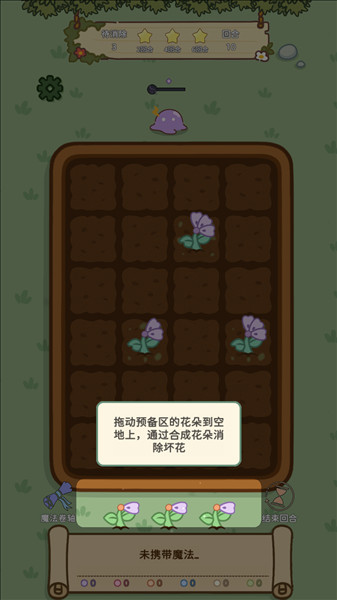 魔法花匠测试版将合成消除与冒险战斗巧妙结合,以清新可爱的卡通画风营造出轻松又富有挑战性的游戏氛围。玩家可以自由挑选不同难度的关卡进行挑战,通过完成目标不断解锁具备独特攻击方式与天赋能力的植物伙伴。魔法花匠(magic flower)测试手机版下载后,玩家需要将相同植物进行合并升级,可培育出更高等级、更强战力的形态,再根据战局灵活布置阵容,释放猛烈攻势,逐步击溃来袭的怪物大军。