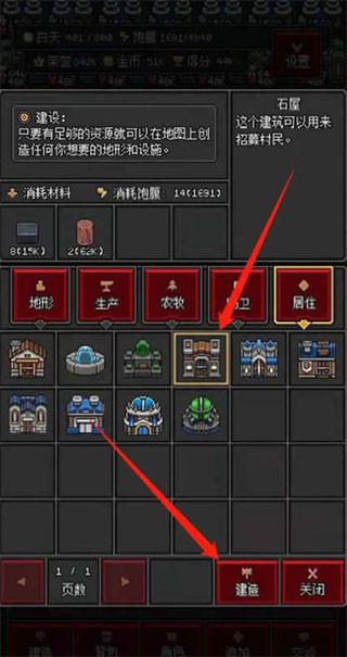 3、在居住类型中,选中需要建造的建筑。