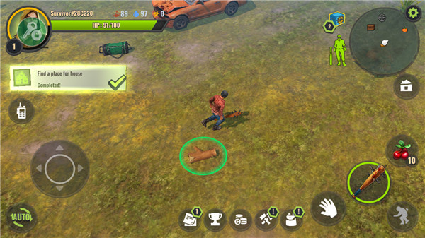 1、开局先捡点树枝,做个武器,先把家附近的丧尸清了!然后去车上拿把刀,再造几块地板放地上,(系统任务,不造你出不了地图)出去地图,左边右边各有一片地,左边的是石头地,右边的是树林。去的右边,去转下,找到一个NPC,他会攻击你,把他杀了,然后把光他,然后尽量把自己的包包装满资源,回家!这时候你应该可以造储物箱了,造他3,4个,把背包的东西放里面。