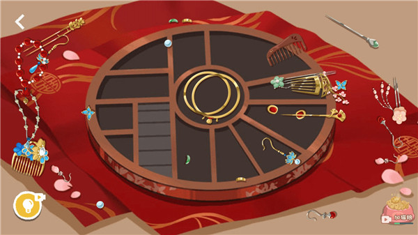 1、进玩家可以看到在关卡中有各种类型的首饰,玩家要将他们放在正确位置。