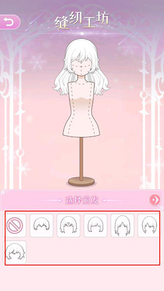 2、进入缝纫工坊可以选择衣服、发型、连衣裙模板;