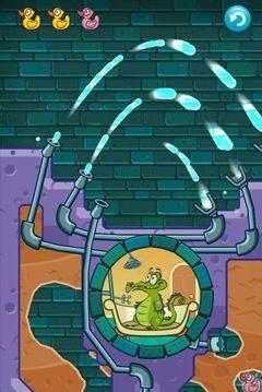 鳄鱼宝宝需要洗澡,它的浴缸,某些关卡需点击水管喷水,通过你的智慧,把所有的关卡都打通,让水管里的水顺利的接通,来到鳄鱼宝宝浴缸就完成任务了,当然,如果有小鸭子一起进入,会增加不少乐趣。