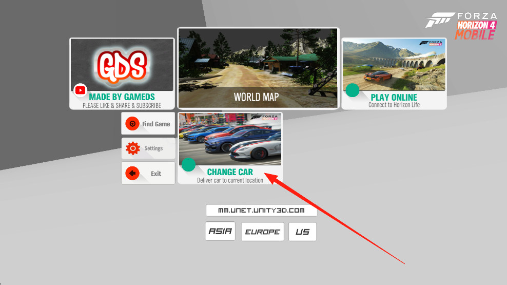 1、打开地平线4手机版游戏,点击【CHANGE CAR】