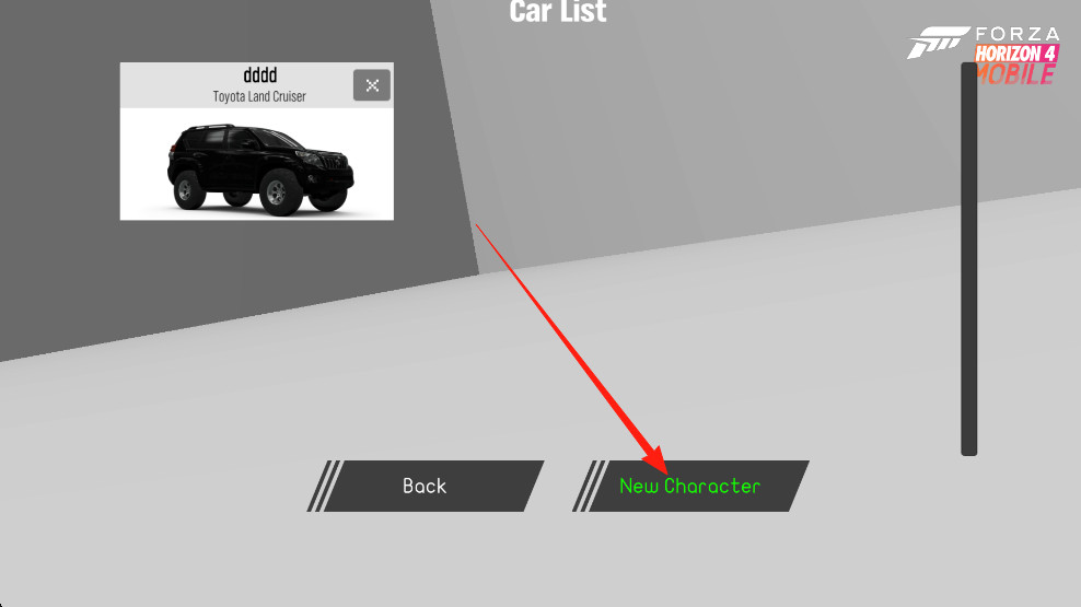 2、点击【New Character】来选择新车辆