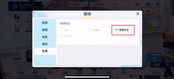 3、最后点击免费,选择语言为繁体中文即可设置游戏语言为中文。