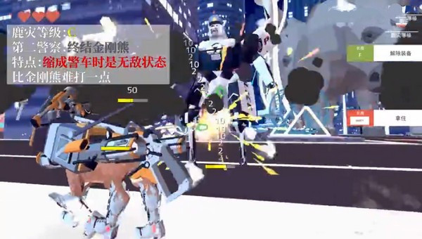 在图中你还会看见犀牛、老虎,不过它们是机甲的组成部分之一,你也只能在机甲上看见。在机甲旁红色按钮上有犀牛,但那个也只是个雕像而已。