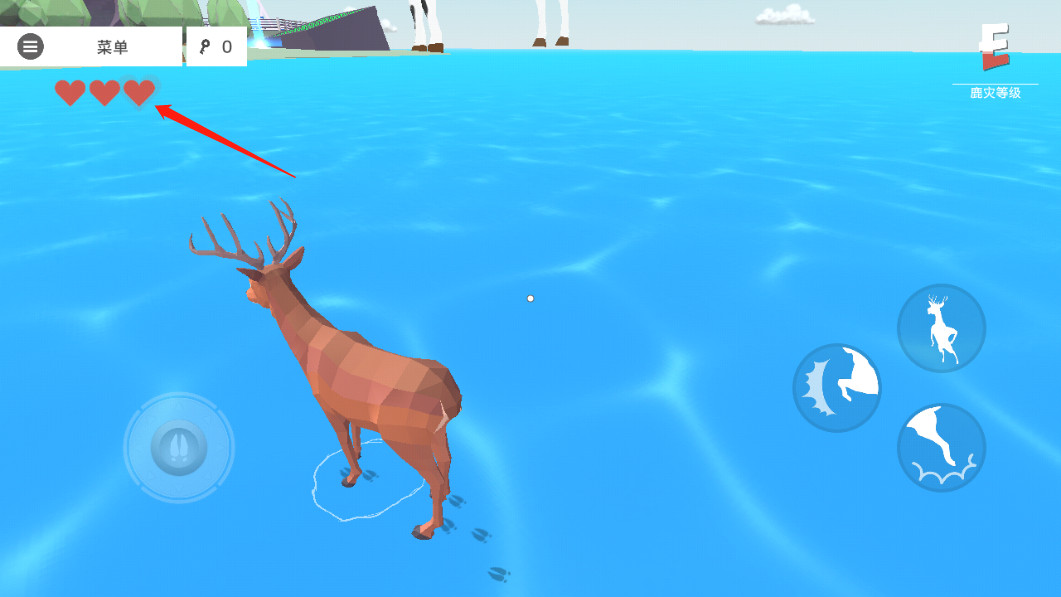 4、进入游戏后,左方控制鹿的移动,右边是鹿的一些技能;