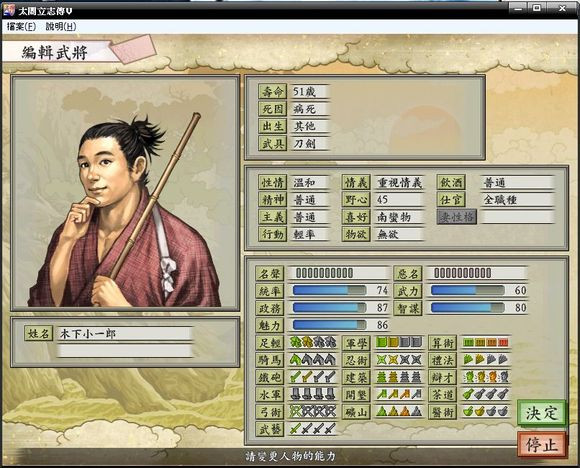 6、清州之町,木下小一郎,推荐原因:政务87,魅力86,开垦3级,矿山3级,算术4级,辩才3级。喜爱物:南蛮物;